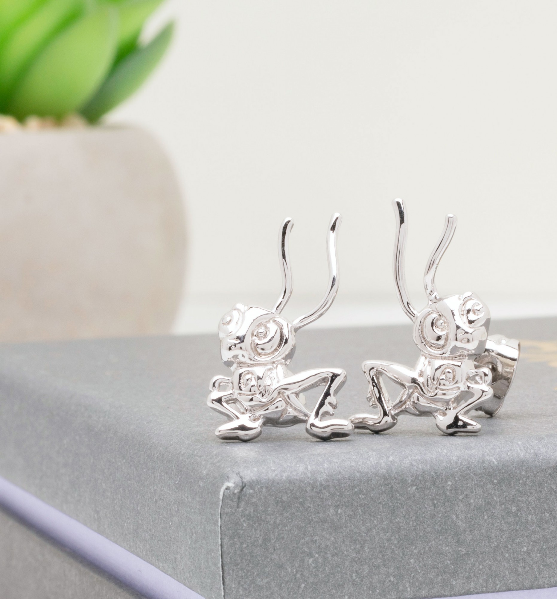 White Gold Plated Disney Mulan Cri Kee Stud Earrings