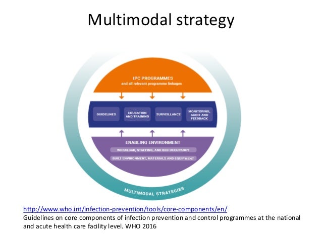 Multimodal implementation strategies are a core component of effective infection prevention and control ipc programmes according to the who guidelines on core components of ipc programmes at the national and acute health care facility level. The guide to implementation accompanies the who guidelines on hand hygiene in health care and outlines a process for fostering hand hygiene improvement in a health care facility. A guide to the application of the who multimodal hand hygiene improvement strategy and the my five moments for hand hygiene approach.