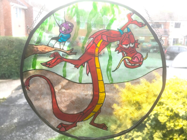 Mulan Mushu And Cri Kee Dragon Stained Glass Suncatcher Etsy