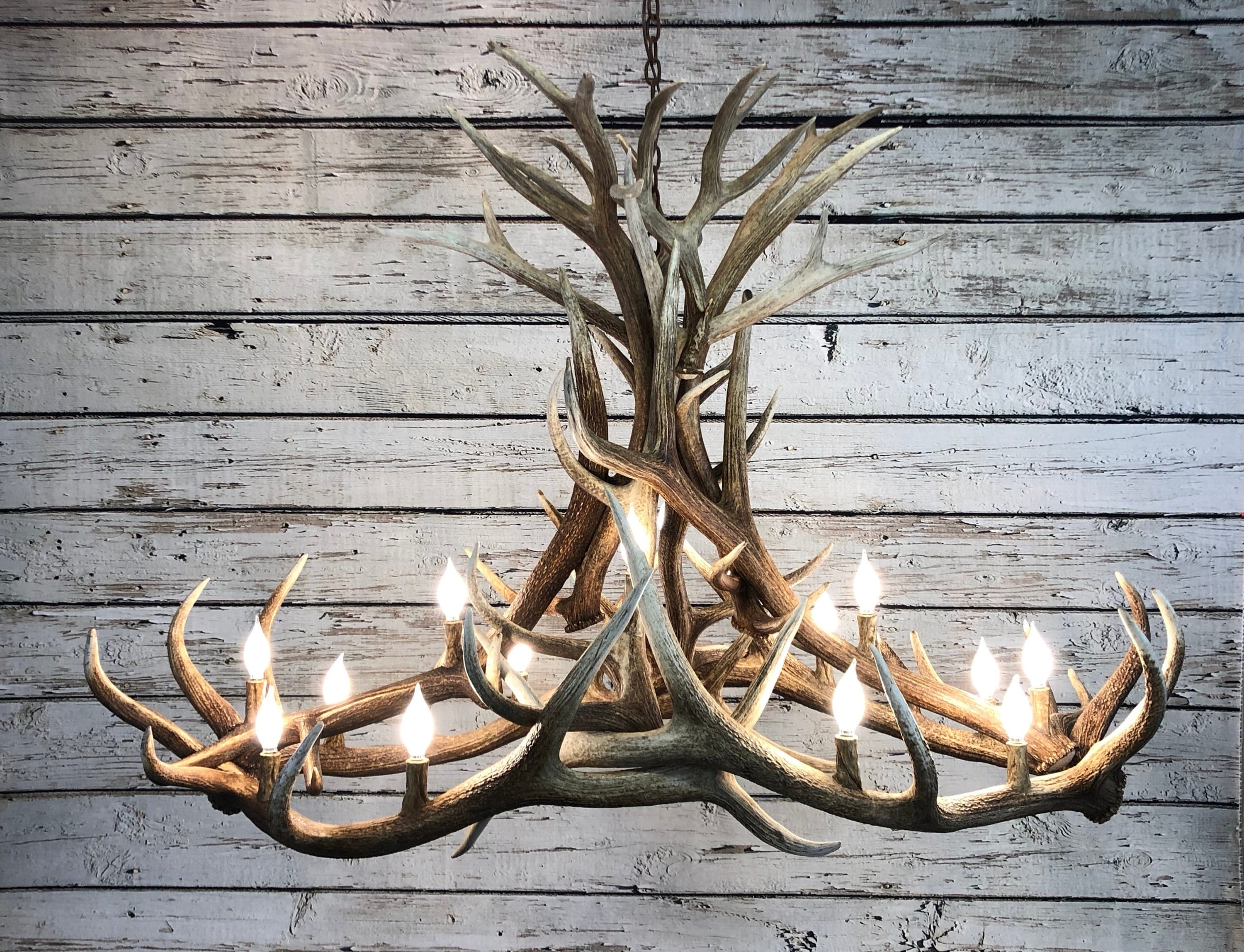 Real Elk Antler Chandelier Elongated Design W Mule Deer Etsy