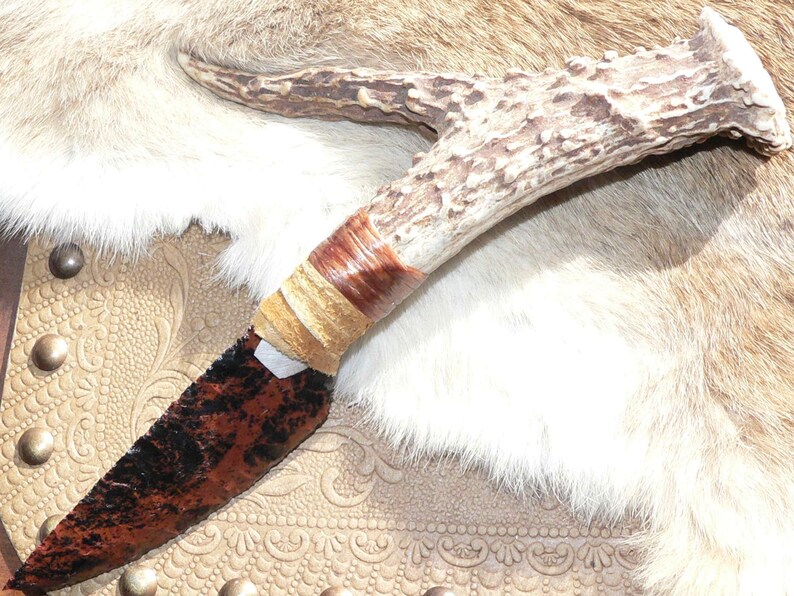 Mahogany Obsidian Knife W Mule Deer Antler Handle Flint Etsy