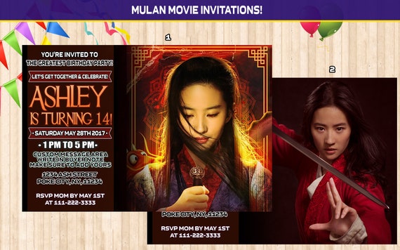 Mulan Invitation Mulan Movie Ticket Disney Princess Ticket Etsy