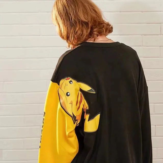 Japanese Anime Pokemon Hoodies Cartoon Print Pikachu Yellow Women