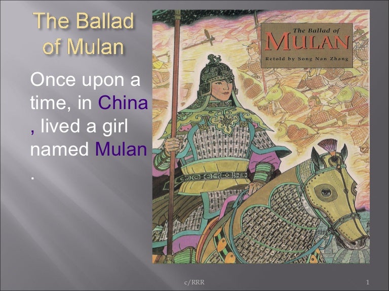 The ballad of mulan. The ballad of mulan is a folksong from northern dynasties china. Is a legendaryfictional female warrior from the northern and southern dynasties period of chinese history originally described in the ballad of mulan chinese.