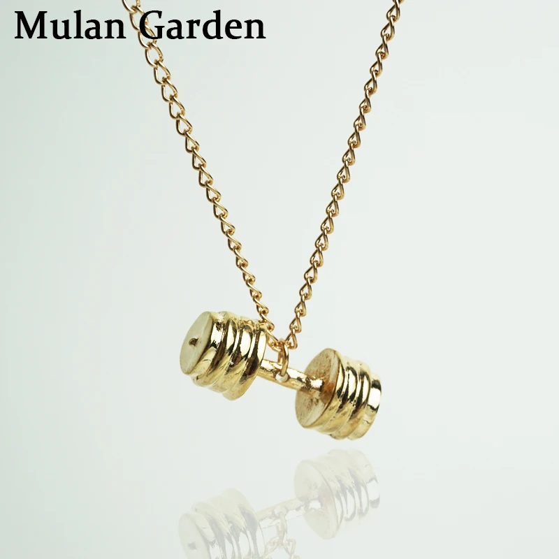 M G Trendy Gold Dumbbell Pendant Necklace Women New Fashion Female