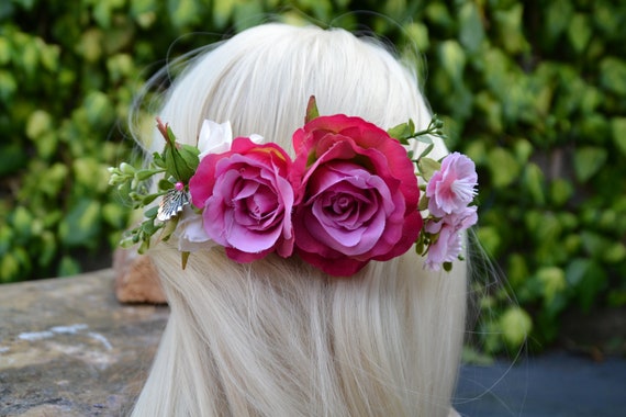 Mulan Fushia Rose And Cherry Blossom Hair Comb Etsy