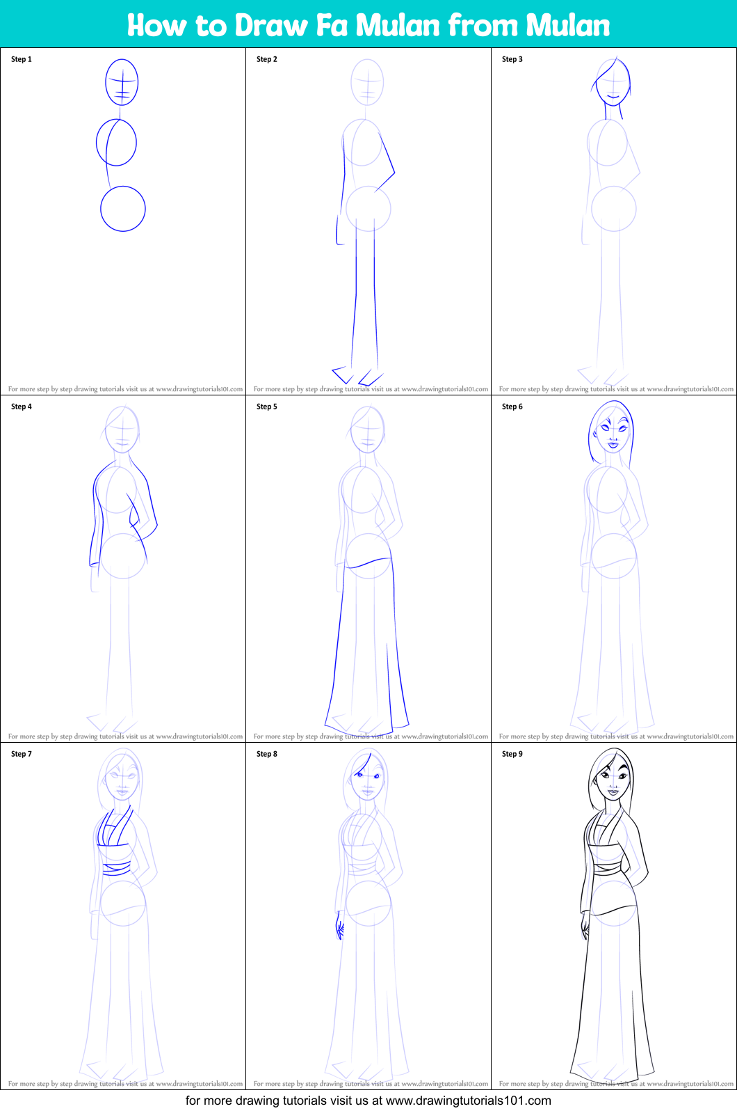 How To Draw Fa Mulan From Mulan Printable Step By Step Drawing