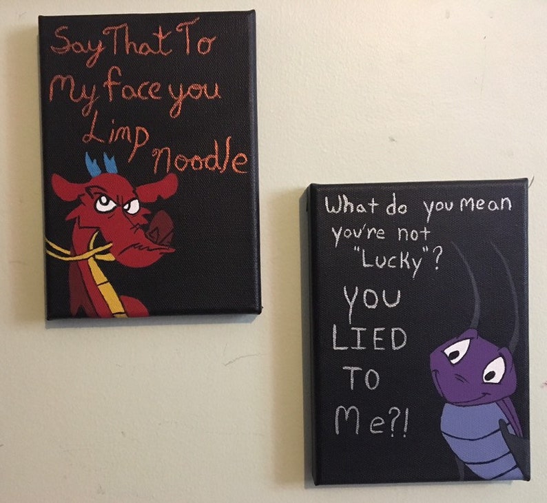 Mushu And Cricket Paintings With Mushu Quotes Mulan Etsy