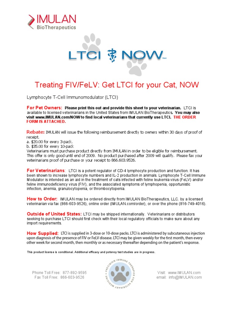 Imulan biotherapeutics. Ltci is the first usda approved product licensed for the treatment of feline immunodeficiency virus fiv and the related feline leukemia virus felv. As such he will oversee all research and development operations for the companys t cell receptor peptides lymphocyte t cell immune modulator and the immune selective anti inflammatory derivatives. Imulan is a veterinary immunobiology company developing a range of immune based therapies for veterinary medicine.