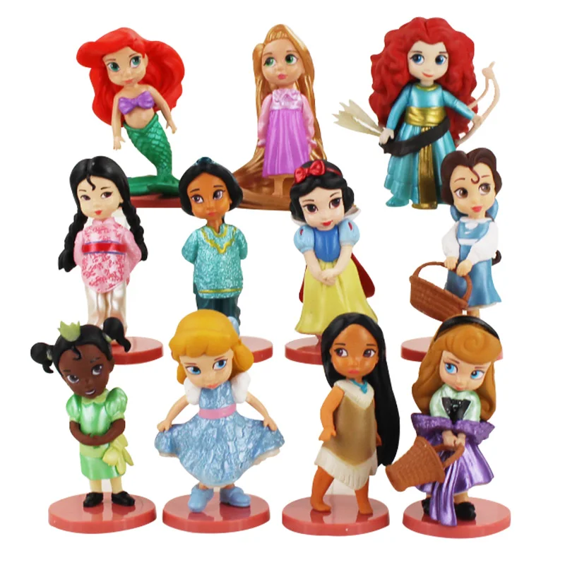 11pcs Set 8cm Moana Snow White Merida Princess Mulan Mermaid Tiana
