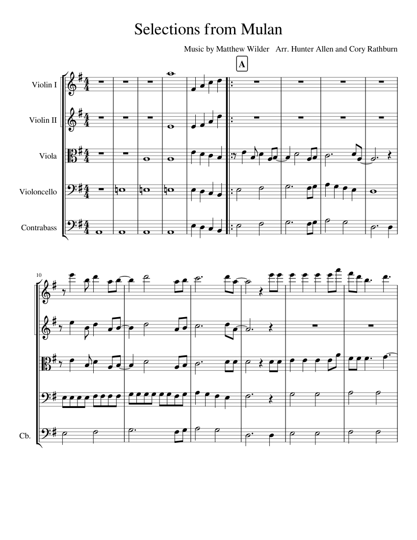 Selections From Mulan Sheet Music For Violin Viola Cello
