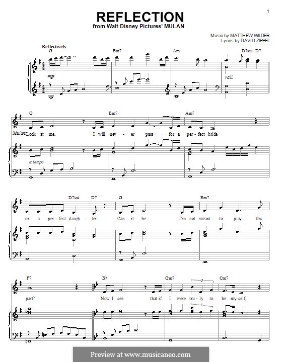 Reflection From Disney S Mulan By M Wilder Sheet Music On