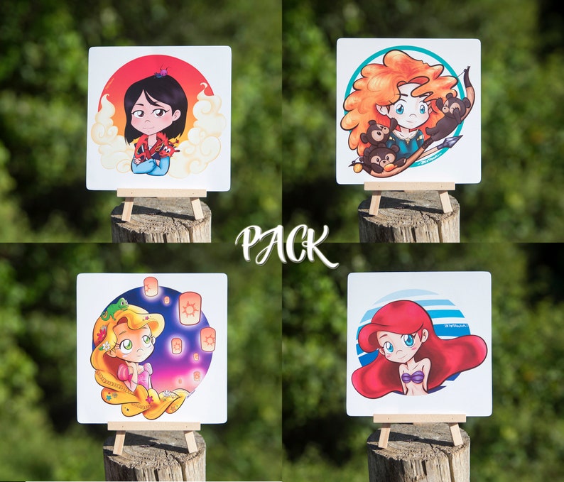 Pack X 4 Prints Disney Princesses Ariel Merida Rapunzel Mulan Etsy